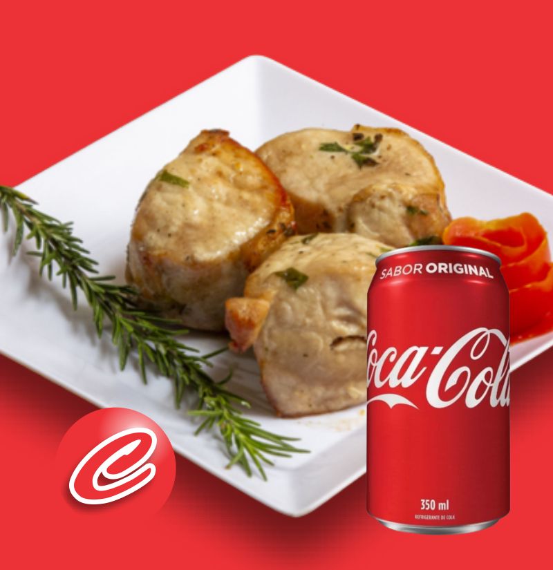 Promo 01 Unidade Lombinho Suíno Porquinho com 01 Coca Lata Gelada. DELICIOSO LOMBINHO DE PORCO ASSADO COMO CHURRASCO, PREPARADO COM CUIDADO E CARINHO.
